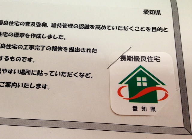 そんなこんなで先日我が家はとうとう完成しまして、長期優良住宅のおすみつきシールが届きました